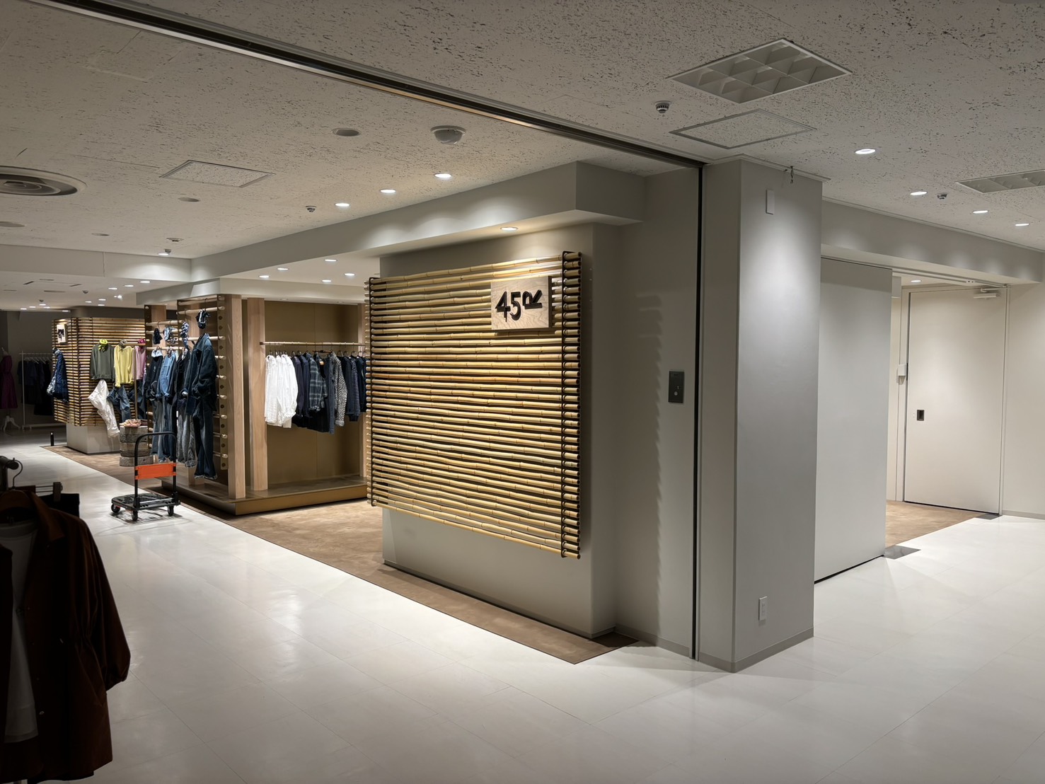 45R福屋八丁堀改修工事 施工年 2025年 施工現場 広島県広島市中区胡町6番26号 施工内容 軽鉄・ボード工事 木・金物造作工事 塗装工事 内装仕上げ工事 床塩ビタイル工事 左官工事 サイン工事 電気設備工事