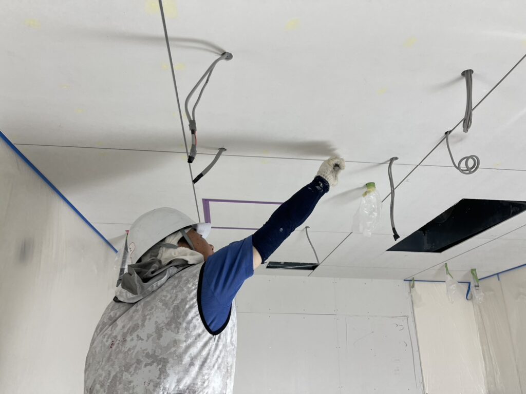 その日の作業内容を確認してから安全第一で作業に入ります(KY活動(危険予知活動)。午前・午後の業務は固定されておらず、その日の工程に合わせて資材搬入や施工補助、調整などを行います。